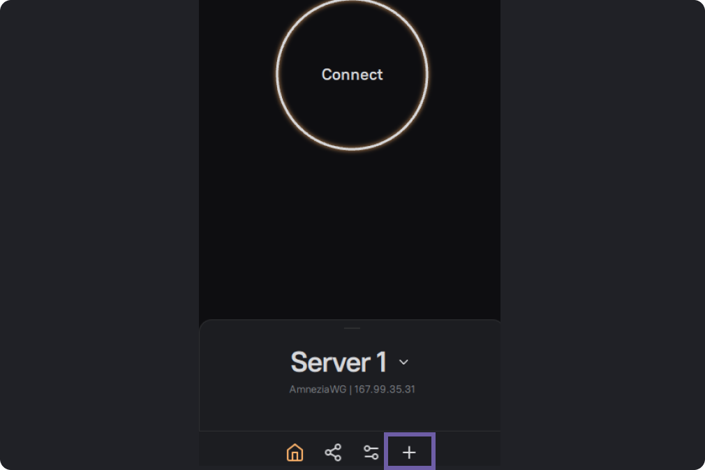 Open the Amnezia app. On the bottom panel, click on the "plus" icon.