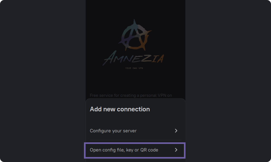 Select the type of data you have. It could be an IP, login and password, QR code, key, or a config file.