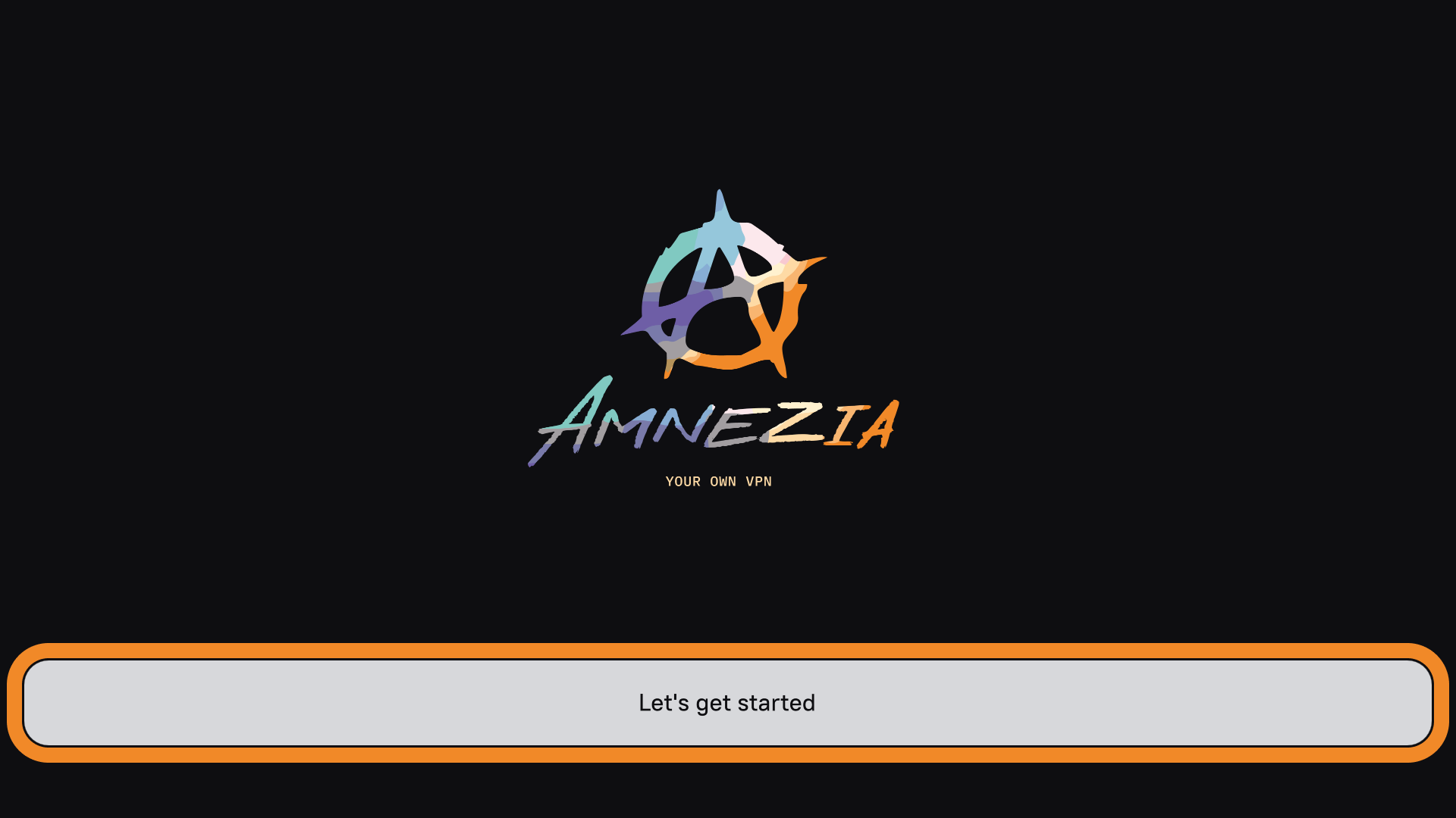 - Open AmneziaVPN on Android TV and tap Let’s get started.