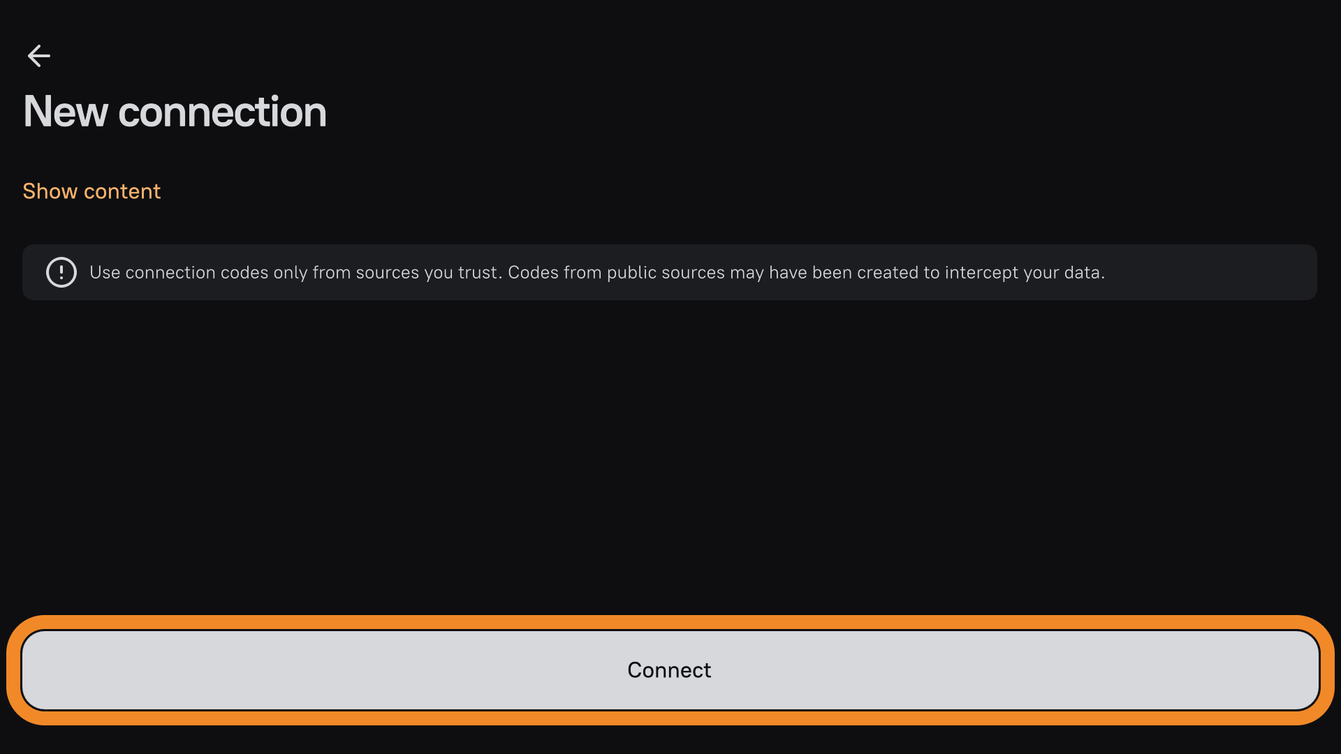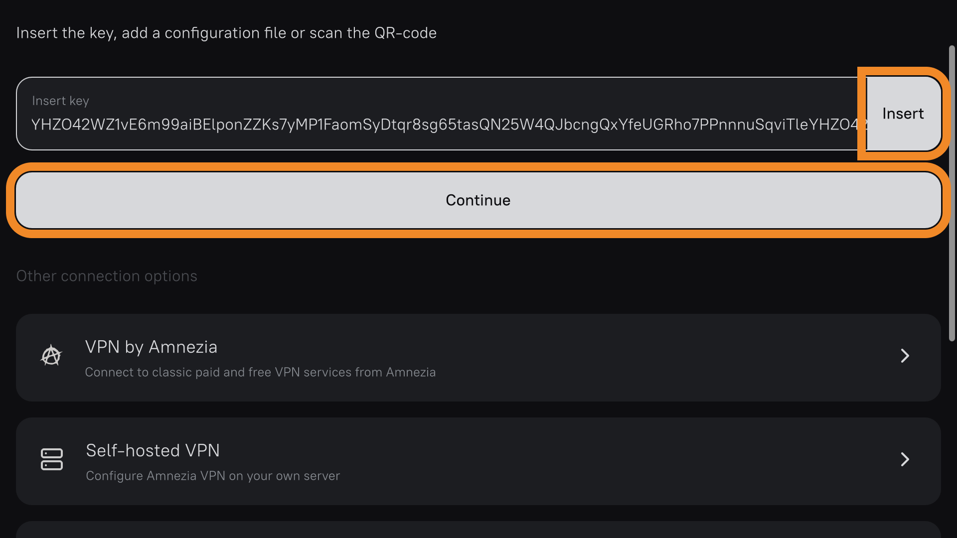 - Tap Insert to the right of the input field, then Continue → Connect.