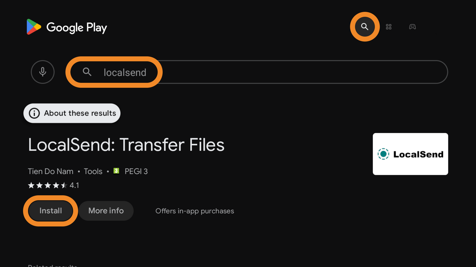 - Find LocalSend via Search and install it.