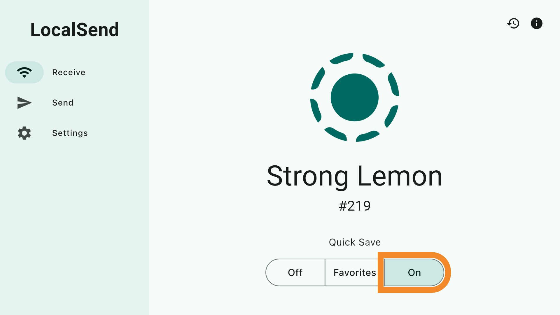 - Open LocalSend and tap On — the app is ready to receive the key from your another device.