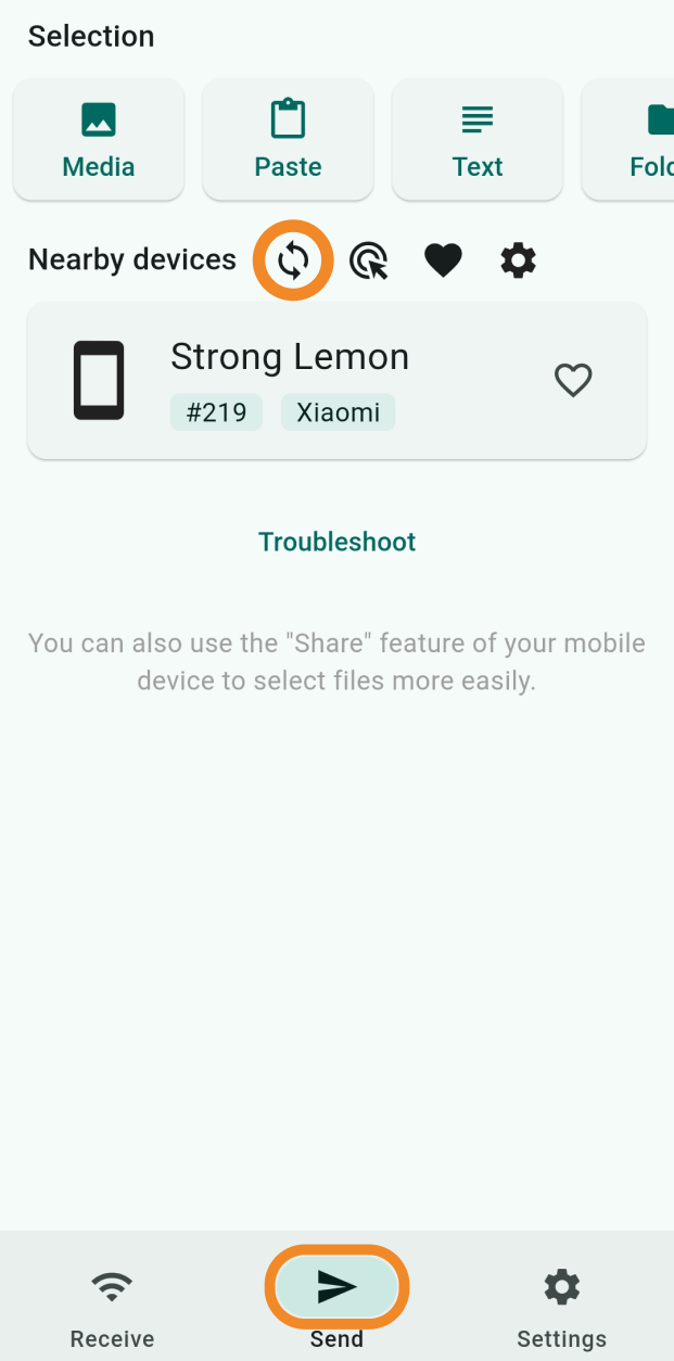 - Tap Send to open the sending menu — you’ll see your Android TV in the devices list with its random name.