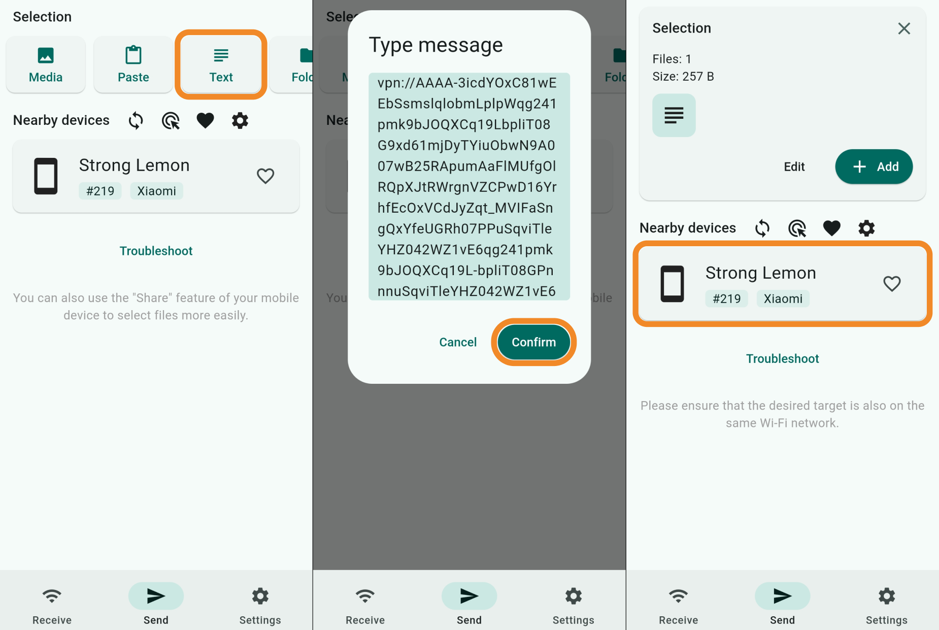 Use the second device where it’s convenient to copy the vpn:// connection key.