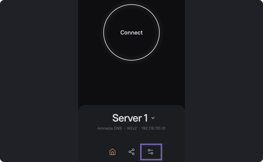 In the future you will be able to change your DNS server settings. To do this, open the home screen and click the settings icon in the lower right corner of the application.