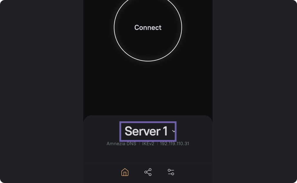 If the desired protocol is not in the list, it means that a connect-only configuration has been shared with you, request a configuration with the desired protocols from the person who shared it with you, or connect to your own server.