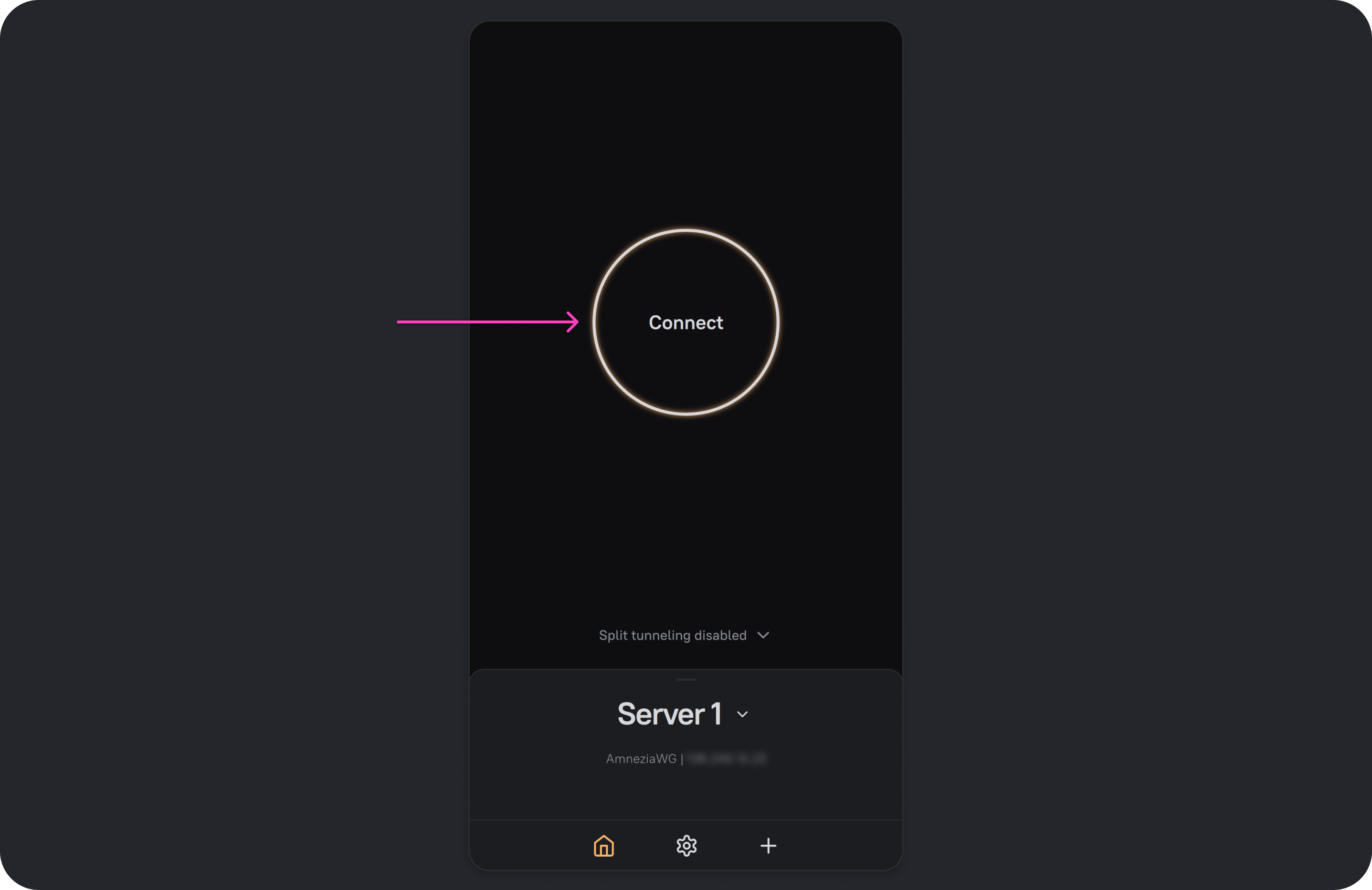 - Open the AmneziaVPN app and tap ➕ (plus icon) or the Get Started button if you have no other connections.