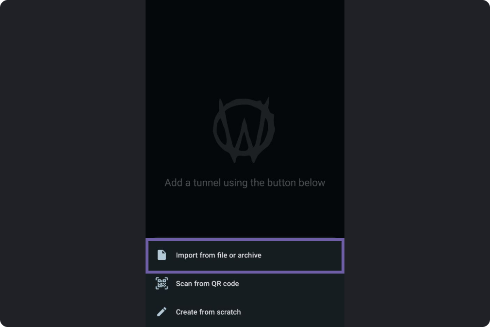 - Open the AmneziaWG app, tap “+” on the main screen.