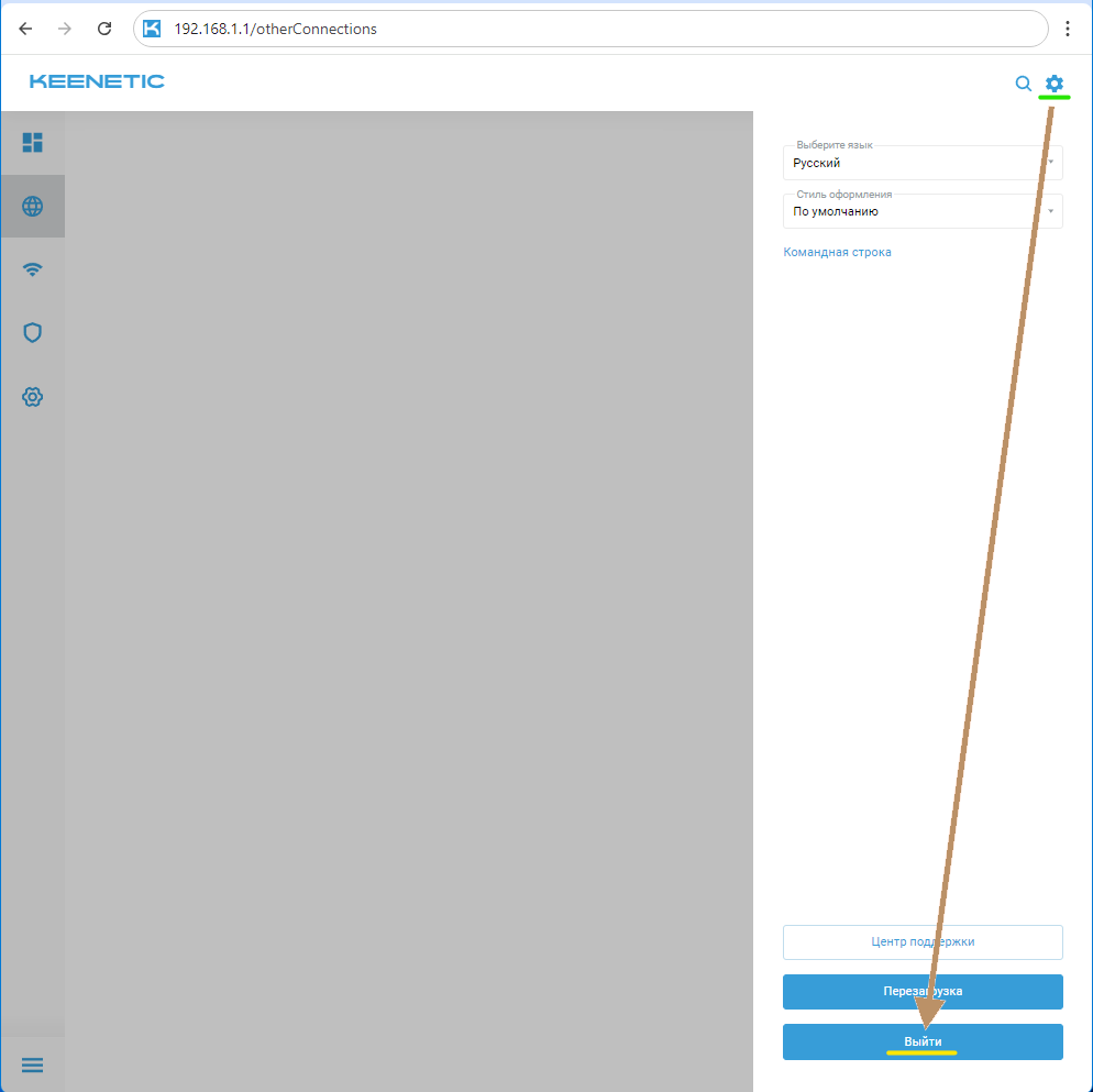 Теперь вы можете выйти из настроек роутера. Нажмите на шестерню в правом верхнем углу страницы, а затем на жать кнопку Выйти в правом нижнем углу страницы.