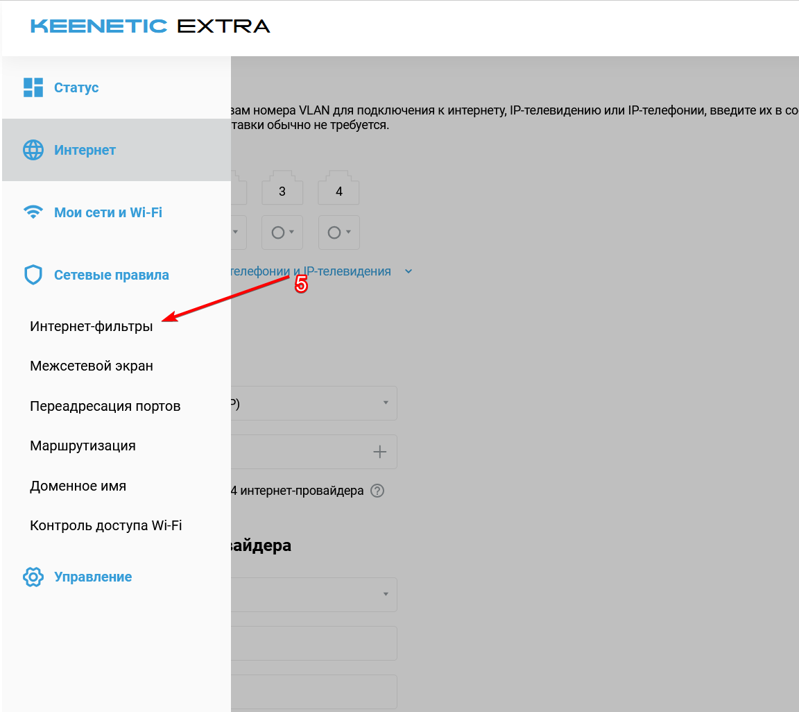 После этого выберите "Интернет-фильтры"
