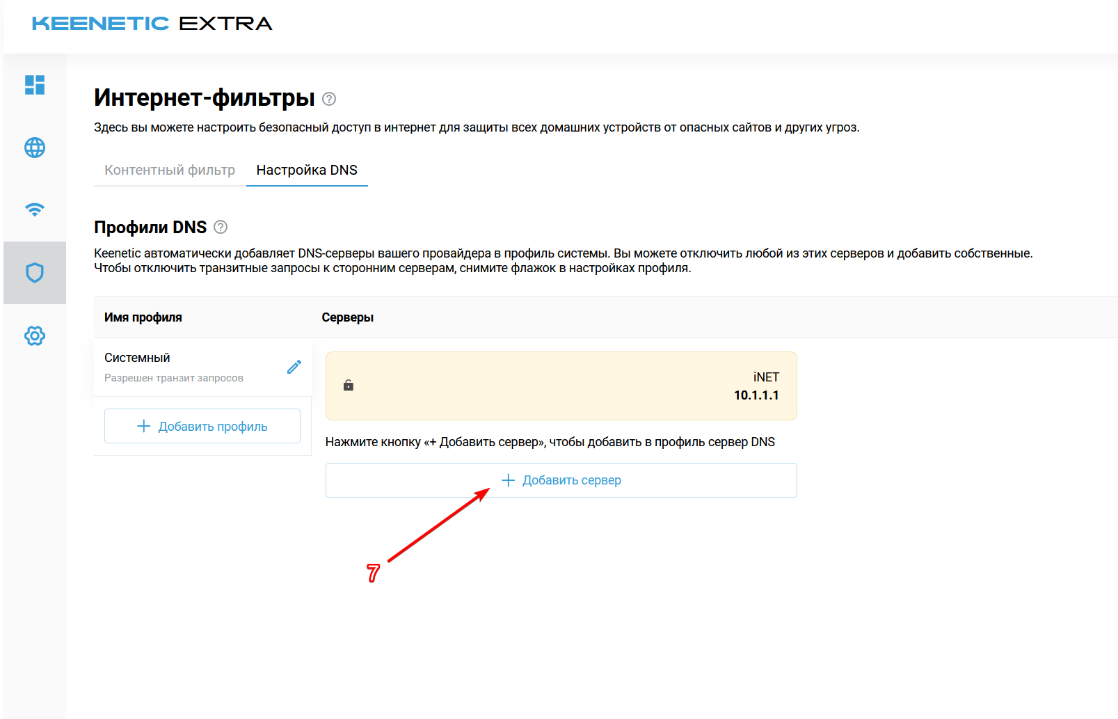 выберите вкладку "Настройка DNS"