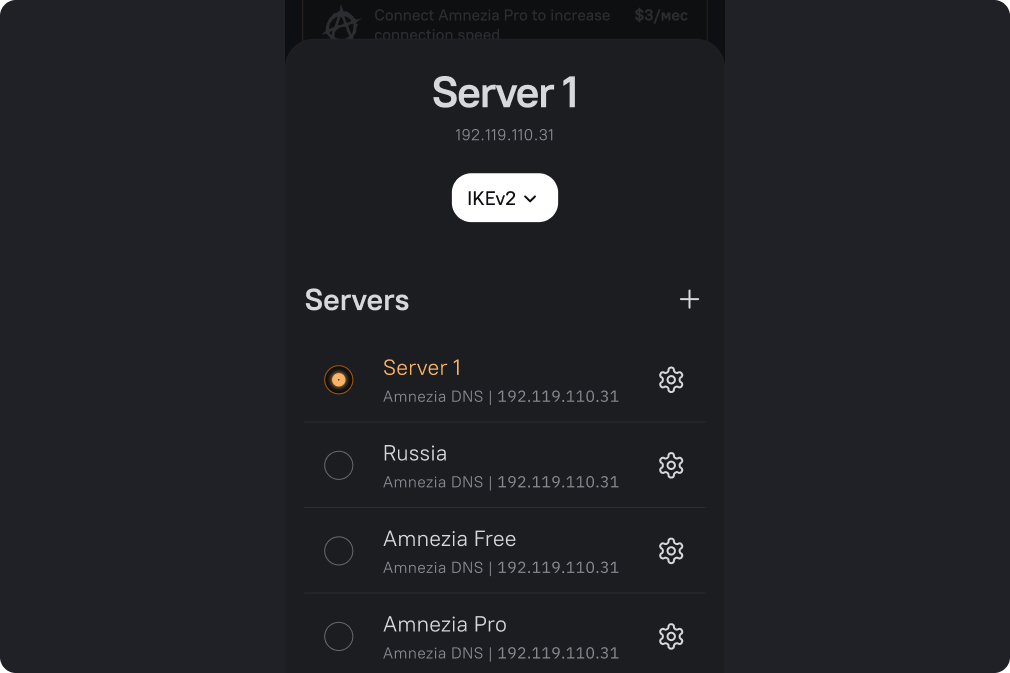 You can connect an unlimited number of servers to Amnezia. They can be your servers, or servers shared with you by other users. To add a new server, see adding a new server instructions