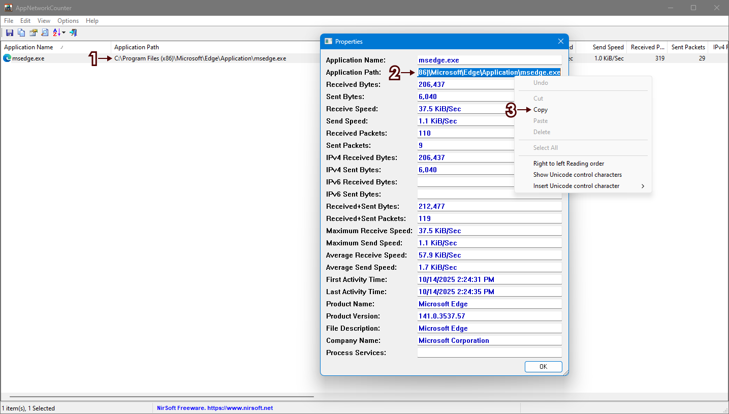 To copy the path, double-click a process and copy the Application Path value.