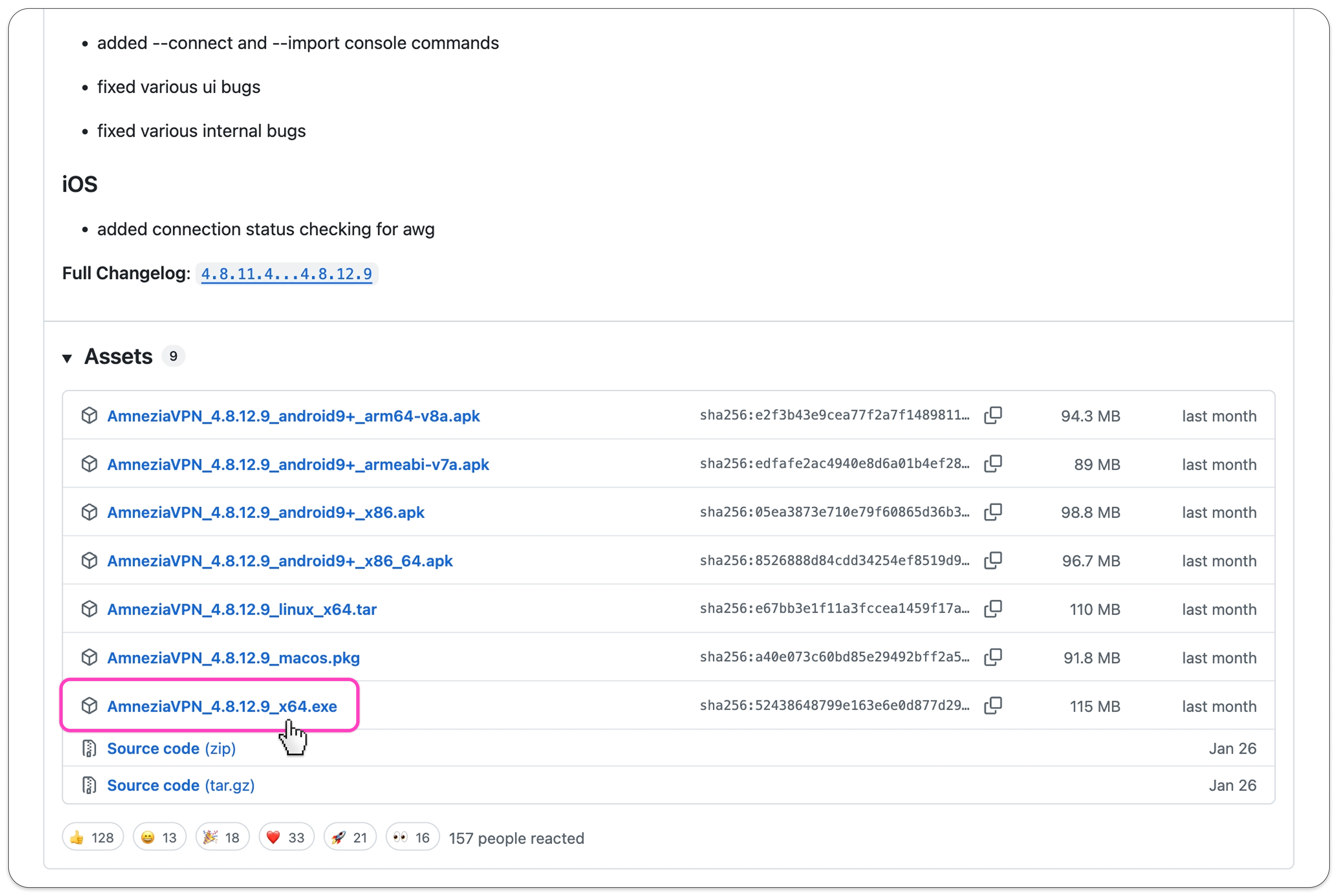 Если у вас более старая версия, чем на GitHub, рекомендуем обновиться. Например, у вас AmneziaVPN 4.8.11.4, а на GitHub доступна 4.8.12.9.