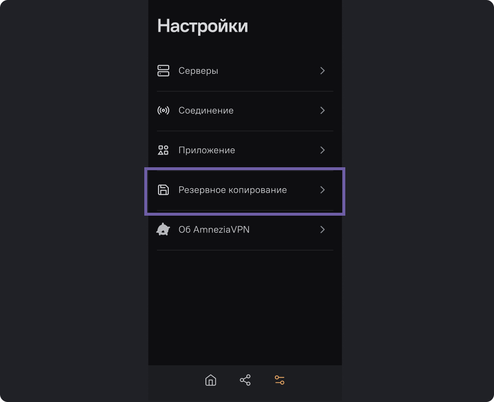 Вы можете сохранить настройки приложения (все подключенные серверы с VPN-протоколами и сервисами) в файл, и позднее восстановить сохранение в любой версии приложения, на любом устройстве.