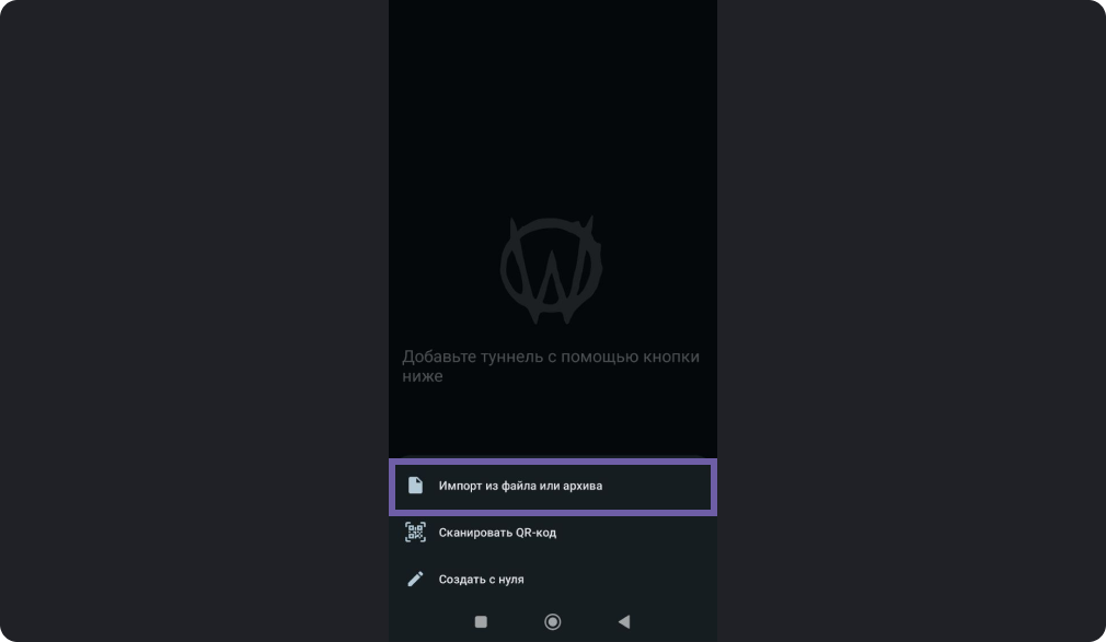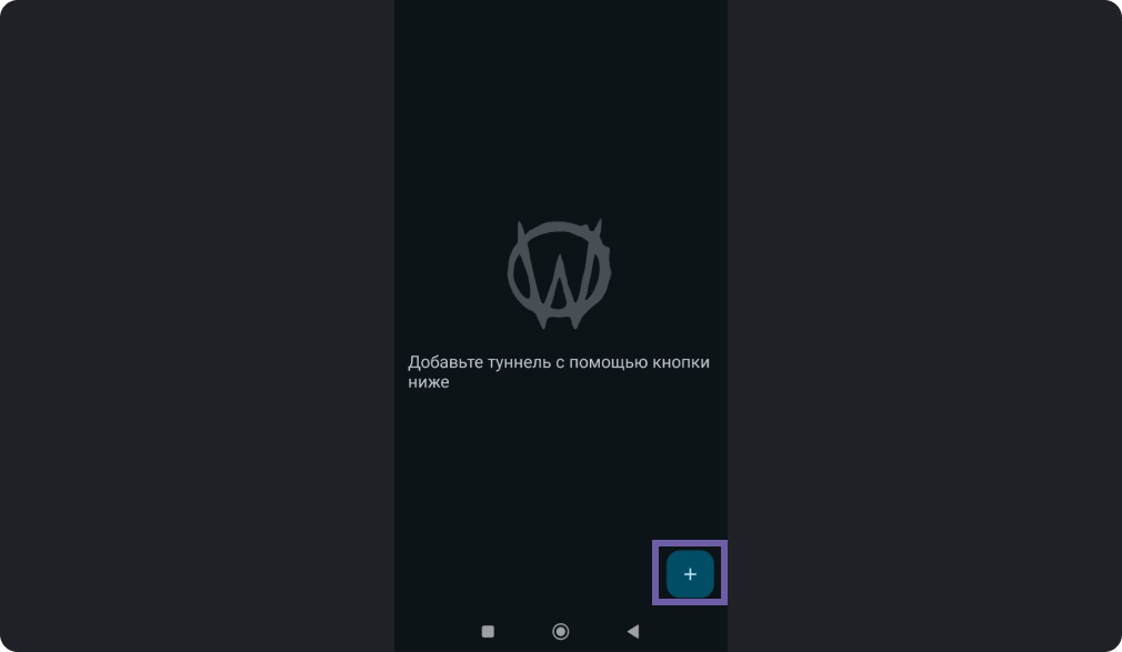 - Откройте приложение AmneziaWG, нажмите “+” на первом экране.