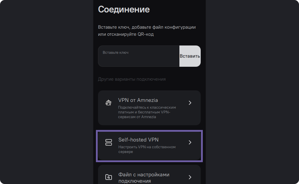 Нам нужно настроить VPN на собственном сервере, поэтому выбираем "Self-hosted VPN"