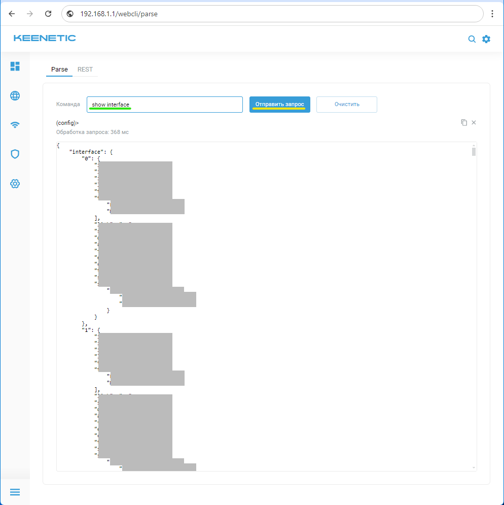 Получившуюся строку нужно вставить в веб-версии командной строки роутера и нажать кнопку "Отправить запрос". Если вы ввели правильную команду, ниже будет выведен результат обработки запроса как на п риведённом скриншоте.