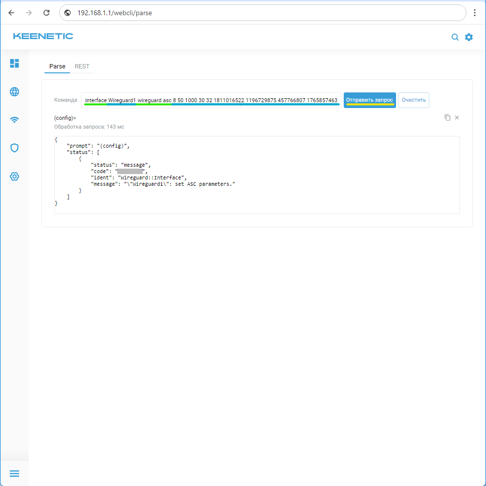 Проверьте, какая версия KeeneticOS установлена на роутере и предлагается ли обновление KeeneticOS до версии 4.2, так как поддержка WireGuard с параметрами asc в KeeneticOS появилась, начиная с версии 4.2 Alpha 2. Если для вашего роутера ещё не вышел релиз KeeneticOS 4.2, попробуйте переключить канал обновления на "Предварительный".