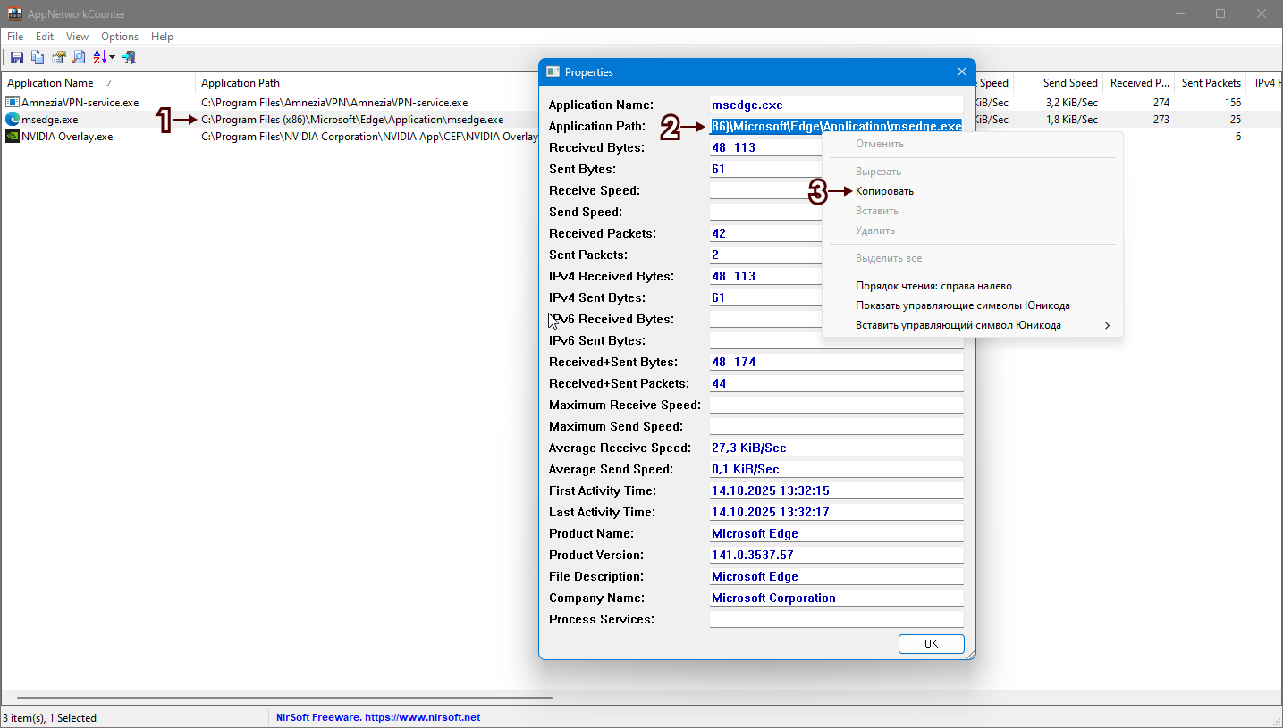 AppNetworkCounter отобразит все процессы, которые в настоящий момент выходят в интернет, а также покажет путь к файлу, который можно добавить в раздельное туннелир ование.