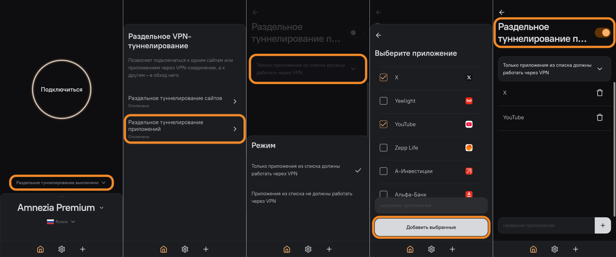 В AmneziaVPN на Windows и Android можно одновременно включить оба варианта раздельного туннелирования — и по сайтам, и по приложениям.