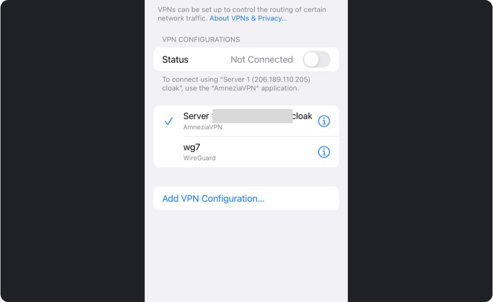 Зайдите в системные настройки VPN, удалите профиль Amnezia VPN и попробуйте подключиться вновь